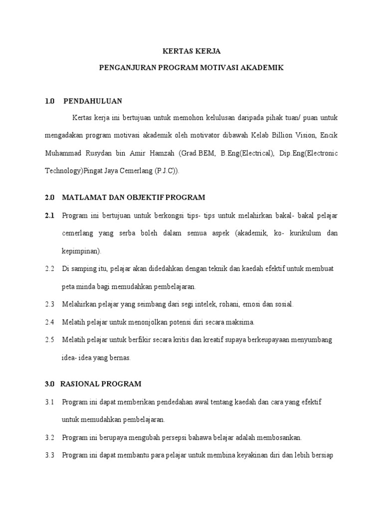 Kertas Kerja Program Motivasi Akademik Pdf