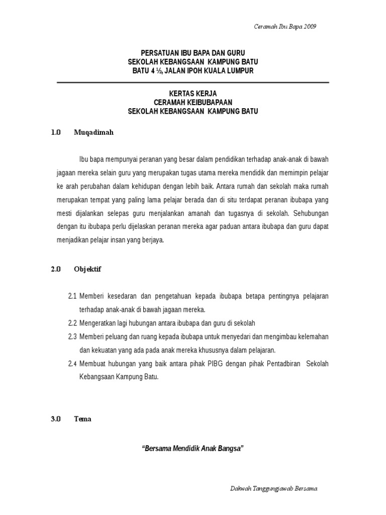 Kertas Kerja Ceramah Motivasi Keibubapaan Pdf