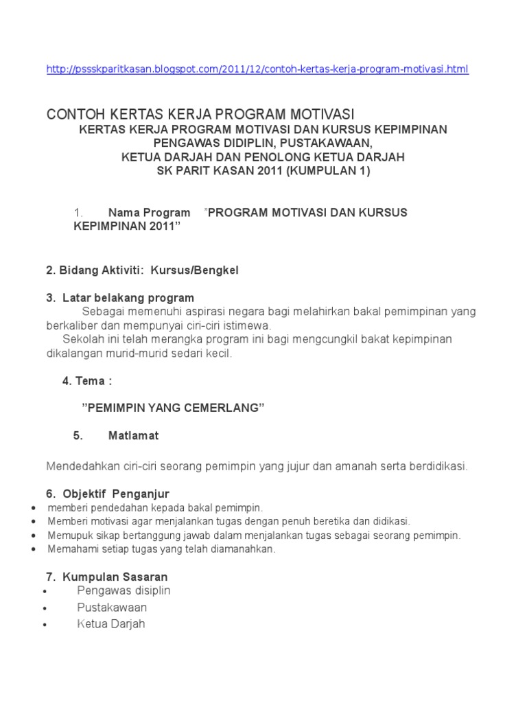 Contoh Kertas Kerja Program Motivasi Pengawas Pdf