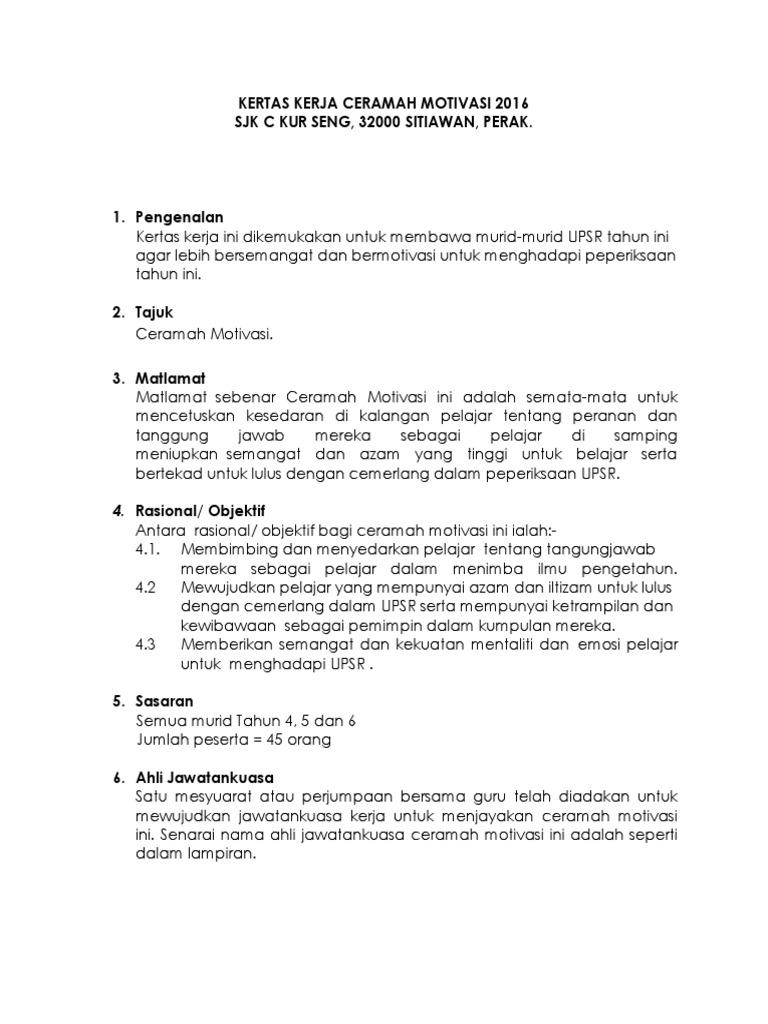 Kertas Kerja Ceramah Motivasi Pdf